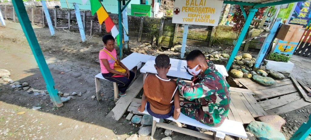 Global Cyber News|Keerom-Selain tugas pokoknya sebagai satuan pengamanan perbatasan RI-PNG personil Pos Waris juga giat dalam memberikan pengobatan kepada kepada masyarakat Kampung Banda,Kabupaten Keerom, Provinsi Papua. Jumat,(11/09/20).