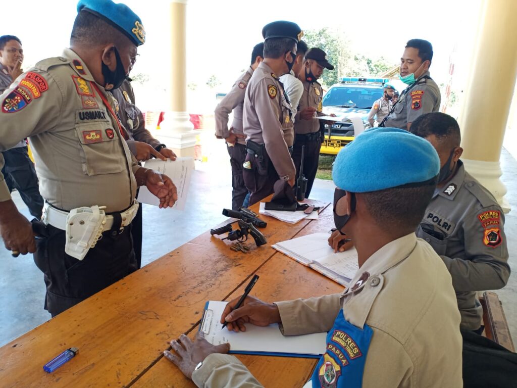 Global Cyber News|Jayapura – Pada hari Senin tanggal 12 Oktober 2020, bertempat di lobi utama Mapolres Mamberamo Tengah, Propam Polres Mamberamo Tengah menggelar pemeriksaan Senjata Api genggam perorangan dalam rangka mencegah penyalahgunaan Senjata Api (Senpi) organik serta mengecek kondisi terkini.