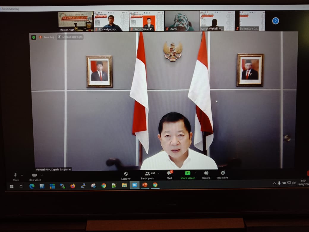 Global Cyber News|Menteri Perencanaan Pembangunan Nasional (PPN)/Kepala Bappenas Suharso Monoarfa menghadiri acara Seminar Nasional Geomatika 2020 dengan tema Informasi Geospasial untuk Inovasi Percepatan Pembangunan Berkelanjutan yang diselenggarakan oleh Badan Informasi Geospasial (BIG), pada Hari Kamis, 15 Oktober 2020.