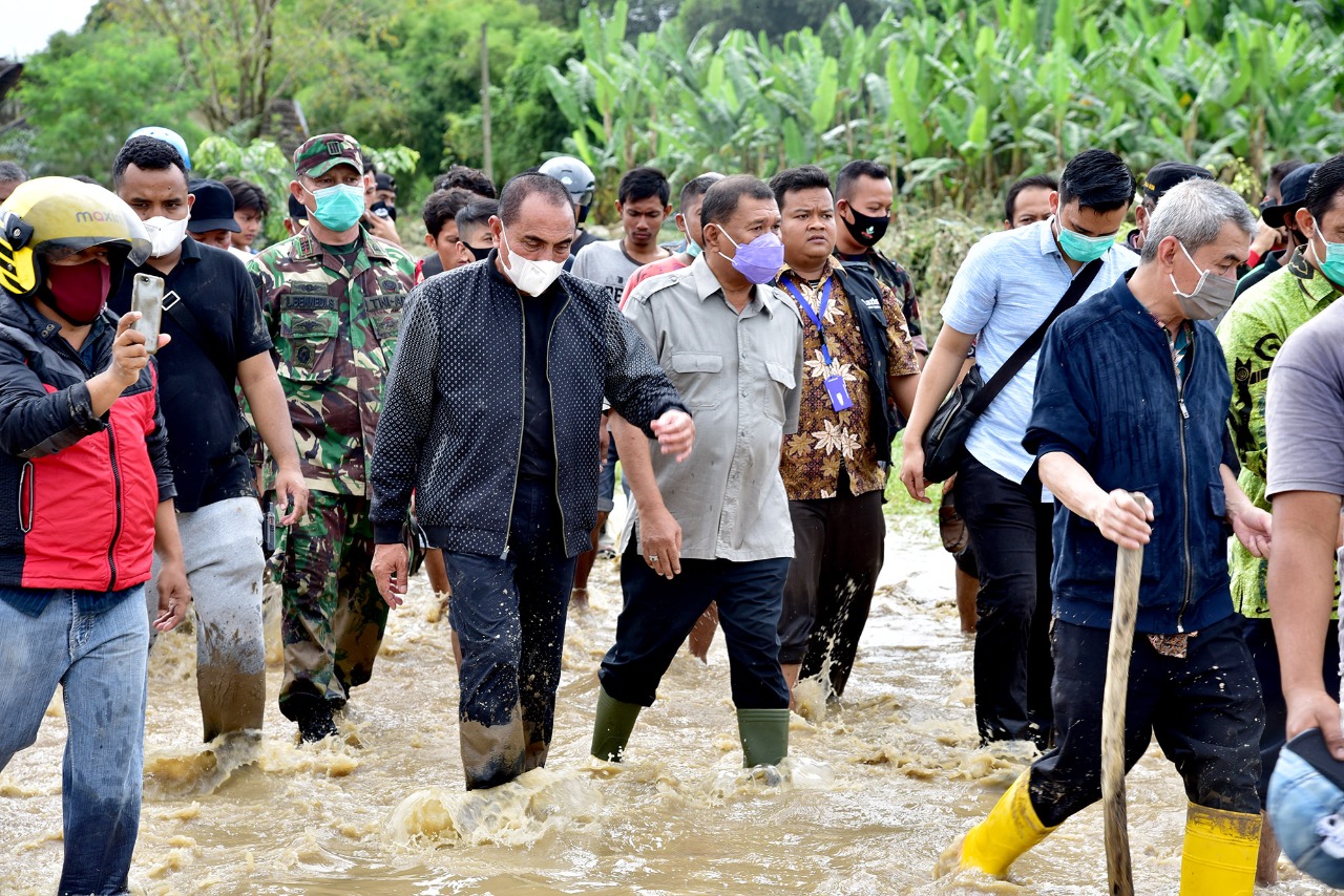 Global Cyber News.Com|Gubernur Sumatera Utara H Edy Rahmayadi , Bupati Deli Serdang H Ashari Tambunan bersama bergerak langsung meninjau titik lokasi bencana banjir yang berada di Komplek Flamboyan Tanjung Selamat dan Daerah Sekitar Yang Terdampak Untuk Melihat Kondisi Banjir. Jum’at (4/12) pagi.