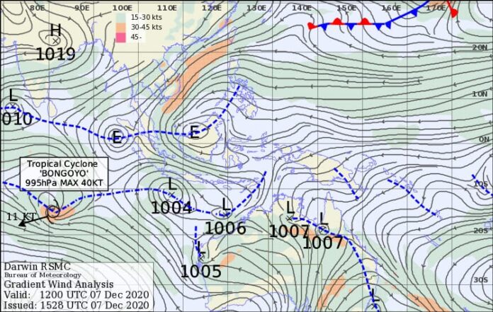 Pola angin di Sumatera Utara didominasi dari arah timur laut dan barat daya dengan kecepatan 5 – 12 knots. Terdapat gangguan siklonik berupa siklon tropis “BONGOYO” di Samudera Hindia barat daya Jawa serta sirkulasi eddy di perairan barat Sumatera dan di perairan barat Kalimantan. Hal ini mengakibatkan terbentuknya belokan angin yang memicu penumpukan massa udara, sehingga potensi pembentukan awan konvektif penyebab hujan menjadi signifikan di sebagian besar wilayah Sumatera Utara.