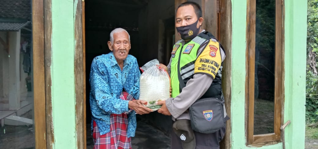 “Anggota Bhabinkamtibmas ini membagi kebahagiaan terhadap sesama dengan memberikan Bantuan berupa beras kepada warga desa binaan yang kurang mampu akibat dampak dari pandemic covid-19, mudah- mudahan dapat bermanfaat dan meringankan beban keluarganya.” tutur Sigit.
