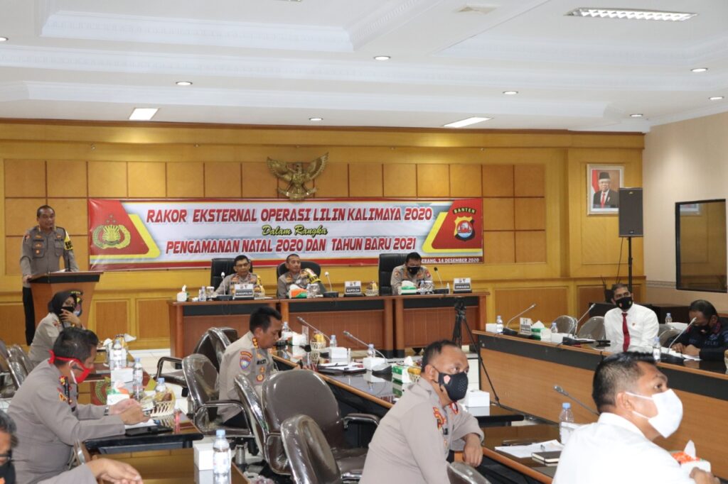 Kabid Humas Polda Banten Kombes Pol Edy Sumardi S.I.K.,M.H dalam rapat Rakor Eksternal Ops Lilin Kalimaya 2020 menyampaikan “dalam pelaksanaan Perayaan Natal dan Tahun Baru 2021 diwajibkan untuk menerapkan Protokol Kesehatan anjuran pemerintah yakni terapkan 3M Memakai Masker, Mencuci Tangan dengan Sabun atau Handsanitizer, dan Menjaga Jarak guna mencegah terjadinya cluster baru,” tutup Edy Sumardi (Bidhumas)