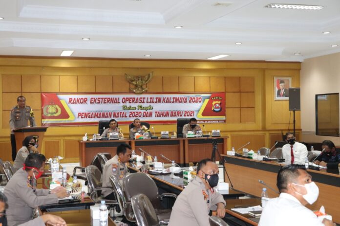 Global Cyber News.Com|SERANG – Polda Banten siap siaga untuk menggelar Pengamanan Natal 2020 dan Tahun Baru 2021. Salah satu wujud kesiapan itu adalah dengan menggelar Rakor Eksternal Operasi Lilin Kalimaya 2020 dengan mengundang sejumlah tokoh agama, aparat keamanan TNI, serta forum koordinasi pimpinan daerah (Forkopimda) melaui aplikasi Zoom Meeting, mengingat dimasa pandemi Covid-19 ini. Rapat Koordinasi digelar di ruang Rupatama Mapolda Banten, Jl. Syekh Nawawi Al Bantani Pada Senin, (14/12/2020).