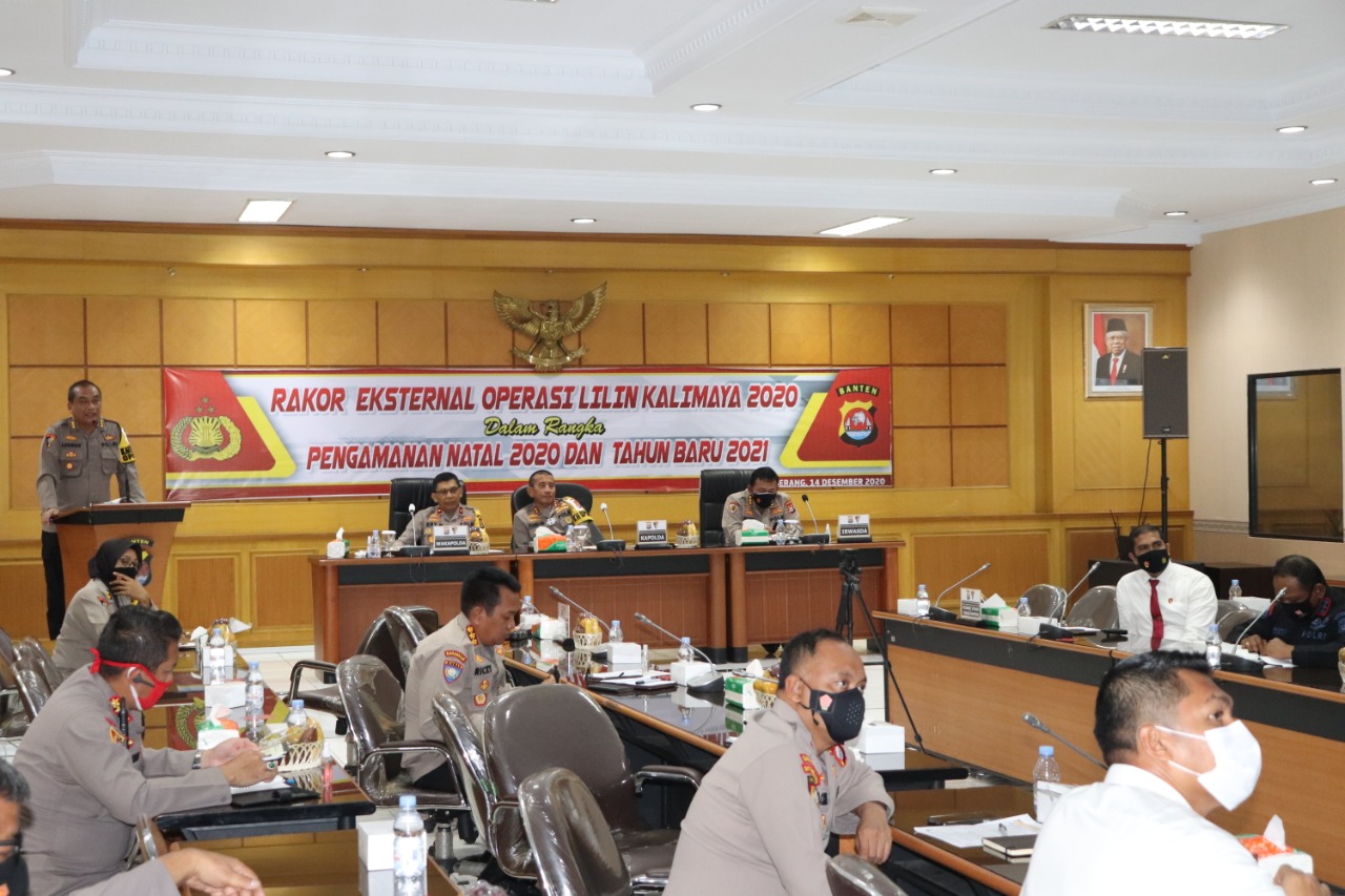 Kabid Humas Polda Banten Kombes Pol Edy Sumardi S.I.K.,M.H dalam rapat Rakor Eksternal Ops Lilin Kalimaya 2020 menyampaikan “dalam pelaksanaan Perayaan Natal dan Tahun Baru 2021 diwajibkan untuk menerapkan Protokol Kesehatan anjuran pemerintah yakni terapkan 3M Memakai Masker, Mencuci Tangan dengan Sabun atau Handsanitizer, dan Menjaga Jarak guna mencegah terjadinya cluster baru,” tutup Edy Sumardi (Bidhumas)