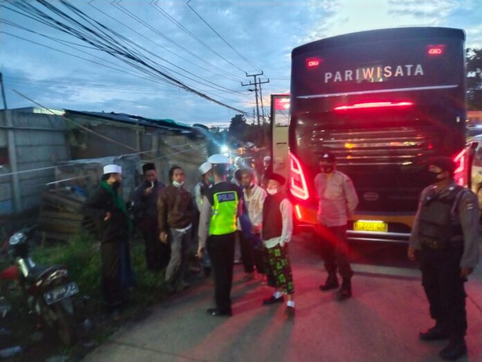 Global Cyber News.Com|SERANG – Personel Polres Serang menemukan 1 Bus Pariwisata yang berisi massa dan para simpatisan FPI yang hendak berangkat ke Jakarta.