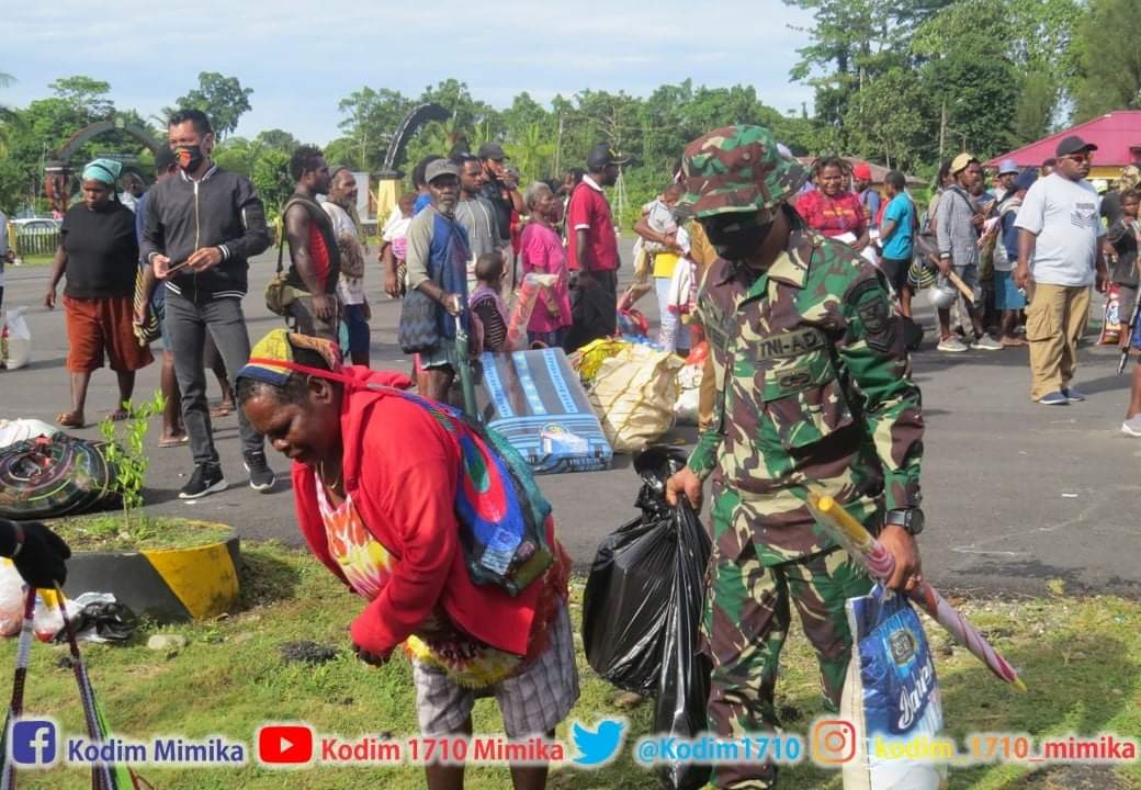 ANGGOTA KODIM 1710/MIMIKA BANTU KEMBALI MASYARAKAT TIGA KAMPUNG KE KAMPUNG HALAMANNYA