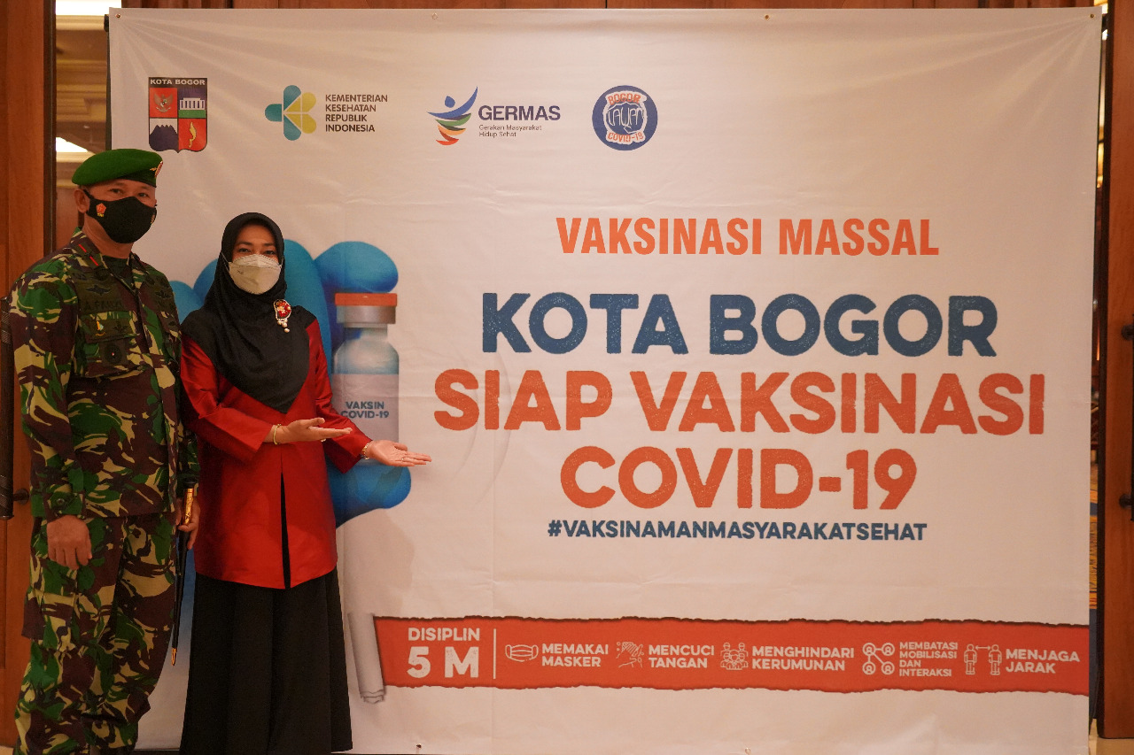 Hadir dalam kegiatan Vaksinasi covid19 tahap 2 Kota Bogor yaitu Walikota, Sekda, serta para Kepala Dinas Jajaran Pemkot Bogor.(Penrem 061/SK).