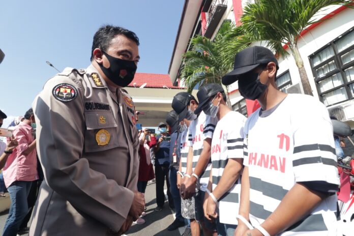 Global Cyber News.Com|Batam – Empat orang pelaku Pencurian kendaraan bermotor berhasil diamankan oleh tim Opsnal Dit Reskrimum Polda Kepri, pelaku berinisial YF, EP, ES, dan Inisisal MF diamankan saat melakukan transaksi jual beli. Hal tersebut disampaikan Oleh Kabid Humas Polda Kepri Kombes Pol Harry Goldenhardt S., S.IK., M.Si., didampingi oleh Dir Reskrimum Polda Kepri Kombes Pol Arie Dharmanto, S.Sos., S.Ik., saat Konferensi Pers di Mapolda Kepri, Rabu (17/3/2021).