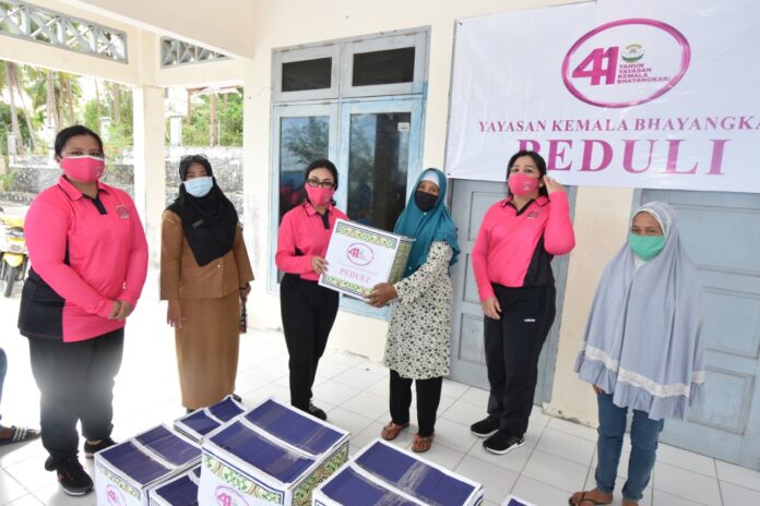 Global Cyber News.Com|Batam – Dalam rangka HUT YKB-41 tahun 2021, Ibu Ketua Yayasan Kemala Bhayangkari Daerah Kepri, Ny. Sinche Aris Budiman, Wakil Ketua YKB Daerah Kepri, Ny. Fitri Musa bersama Pengurus YKB Daerah Kepri melaksanakan kegiatan Anjangsana ke masyarakat Pesisir Pulau Selat dan Pulau Ngenang Kecamatan Nongsa Kota Batam, Selasa (23/3/21).