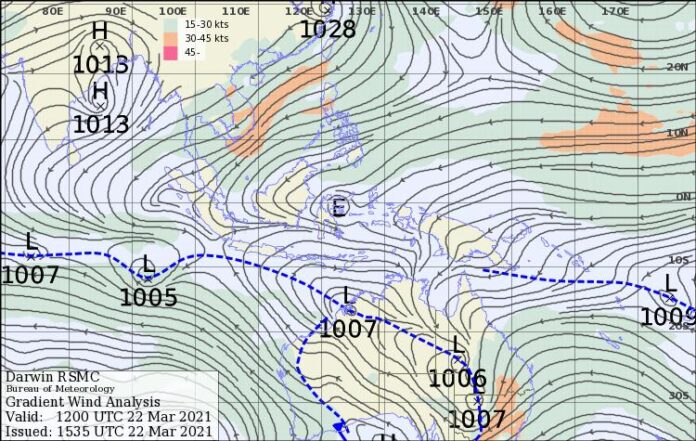 Pola angin di Sumatera Utara didominasi dari arah Timur Laut dengan kecepatan 3 – 15 knots. Terdapat gangguan siklonik berupa daerah pusat tekanan rendah di Samudera Hindia bagian barat daya Sumatera. Hal ini berpengaruh terhadap potensi pembentukan awan konvektif penyebab hujan di beberapa wilayah di Sumatera Utara.