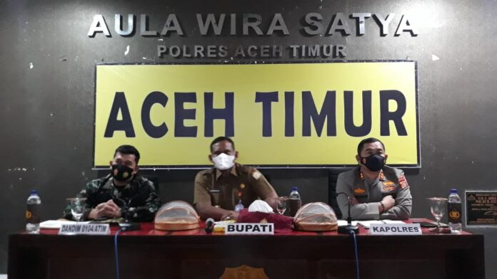 Kegiatan yang dipimpin Bupati Aceh Timur H. Hasballah H. M Thaeb, SH itu dilaksanakan secara virtual melalui zoom meeting dan juga dihadiri Kapolres Aceh Timur AKBP Eko Widiantoro, S.I.K, M.H, Kepala Pelaksana BPBD Aceh Timur, para Kabag, Kasat, dan Kapolsek Polres Aceh Timur.