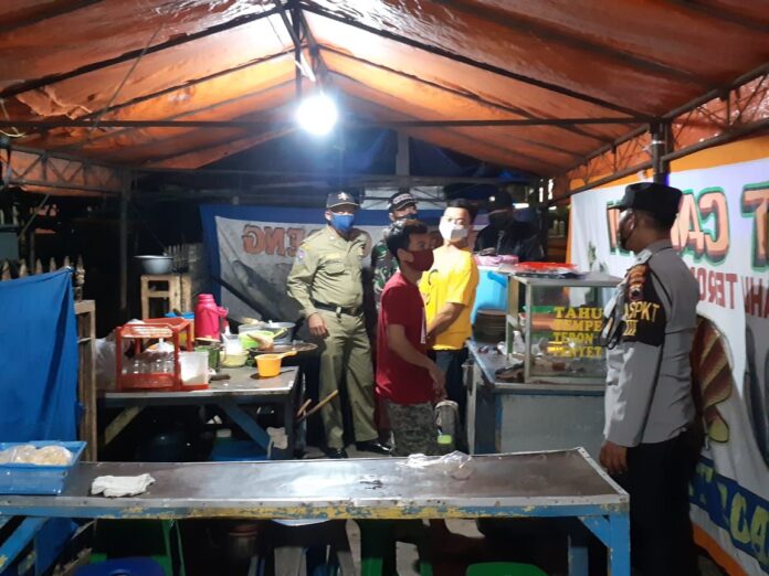 Para aparat gabungan yang tergabung dalam satga penanggulangan covid 19 tidak bosan-bosannya selalu mengingatkan tentang Prokes. “Ini merupakan tanggung jawab moral kami kepada masyarakat dalam menyikapi pandemi covid 19 ini, selain melaksanakan tuga kami juga termotivasi agar warga terhindar dari covid 19, karena pandemi ini sangat cepat penularannya,” tukas Serma Santoso, Babinsa Koramil 02 Nguter. Warung HIK, Warung tenda, PKL dan kedai-kedai jamu menjadi sasaran himbauan malam itu. (Agus Kemplu)