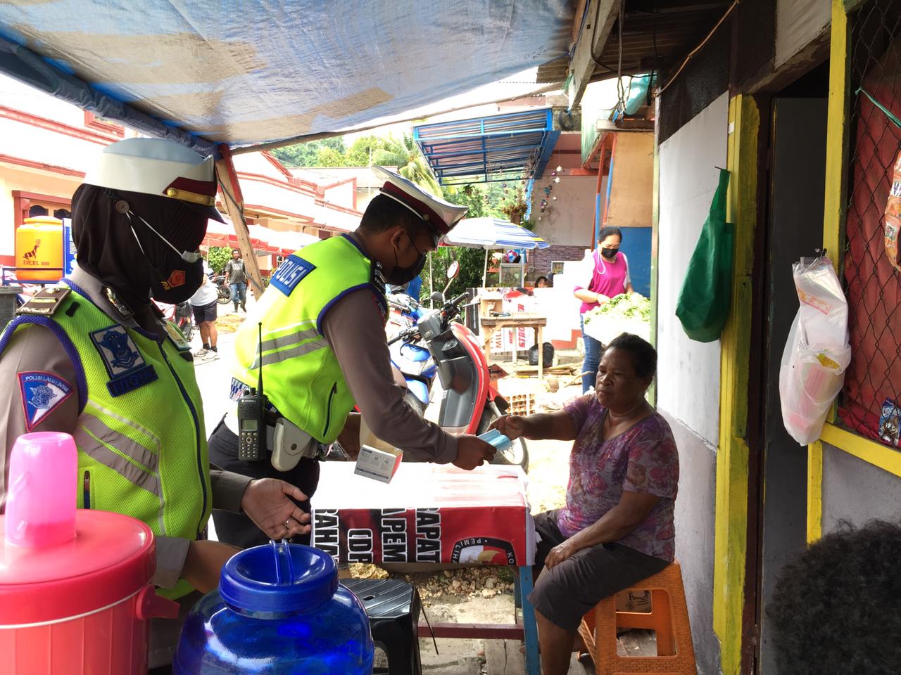 Seperti yang dilakukan Satuan Lalulintas Polresta Jayapura Kota yang rutin mensosialisasikan protokol kesehatan dan membagikan masker kepada para tukang ojek dan pedagang pasar pagi yang berada di Paldam Kelurahan Gurabesi Distrik Jayapura Utara.