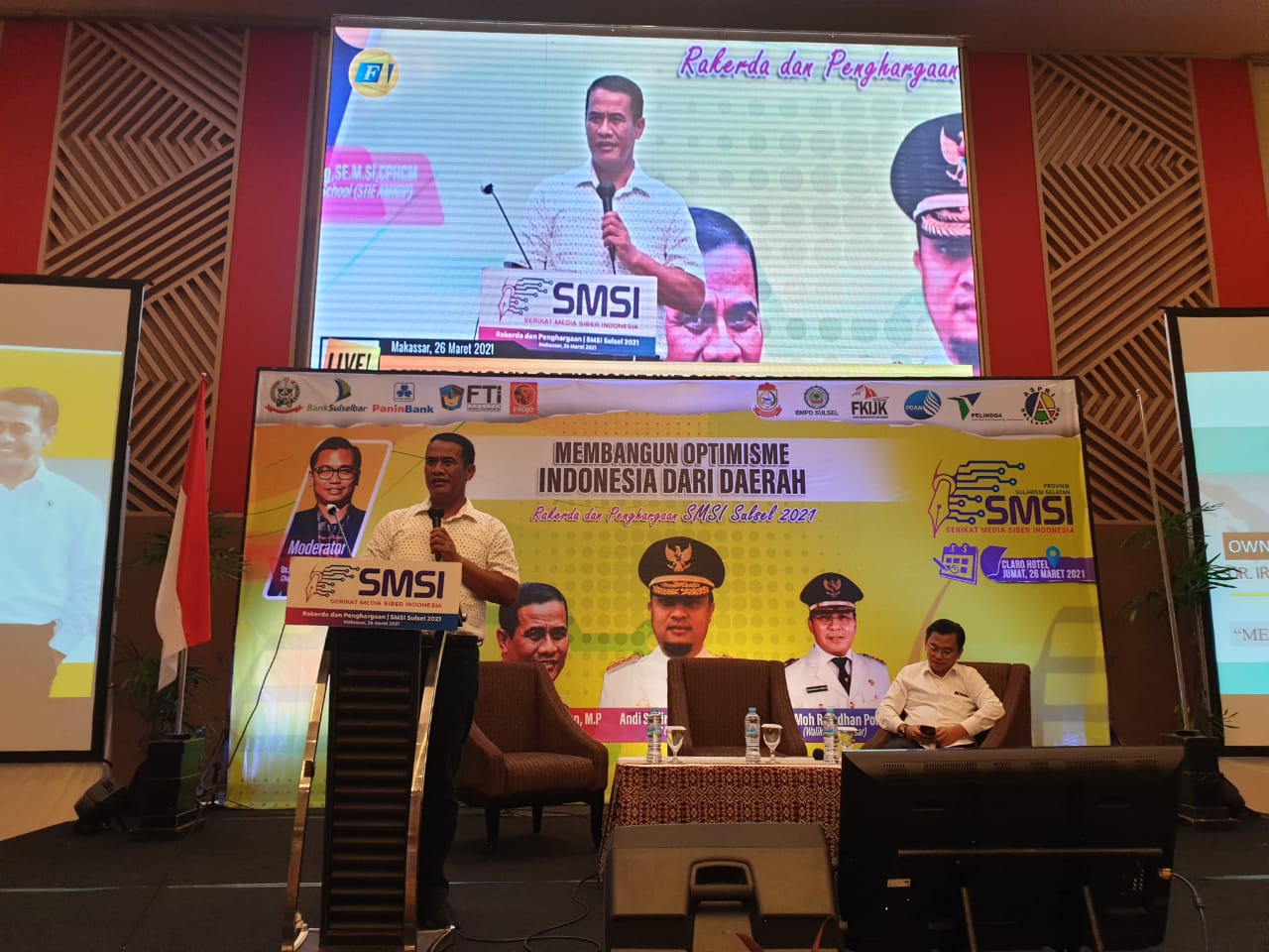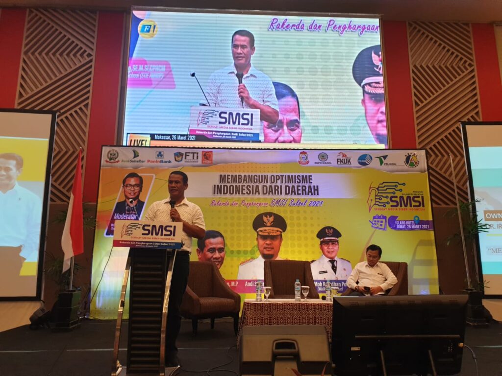 Global Cyber News.Com|MAKASSAR–Pelaksana Tugas Gubernur Sulawesi Selatan Andi Sudirman Sulaiman menghadiri pembukaan Rapat Kerja Daerah (Rakerda) dan Pemberian Penghargaan Serikat Media Siber Indonesia (SMSI) Sulawesi Selatan di Hotel Grand Claro Makassar, Jumat (26/3/2021).