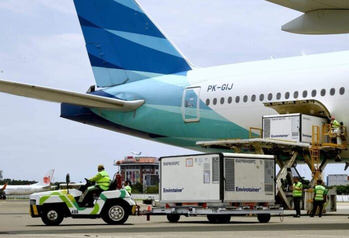 Global Cyber News.Com|Sebanyak 16 juta dosis bahan baku vaksin Covid-19 kembali tiba di Indonesia. Bahan baku vaksin yang berasal dari perusahaan Sinovac tersebut tiba di Bandara Internasional Soekarno-Hatta, Tangerang, pada Kamis, 25 Maret 2021, dengan menggunakan pesawat khusus dari maskapai Garuda Indonesia.