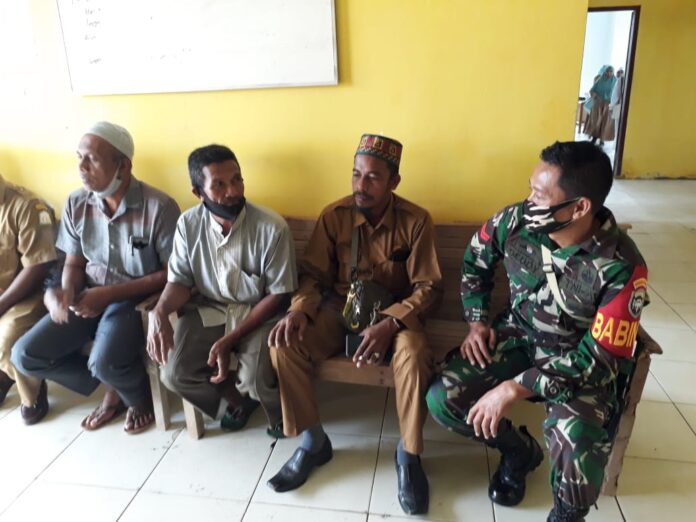 Tampak oleh awak media, masyarakat yang sedang berkumpul di kantor Geuchik untuk mengurus surat-surat atau KTP diberikan sosialisasi dan edukasi oleh Koptu Dedi Yunianto.
