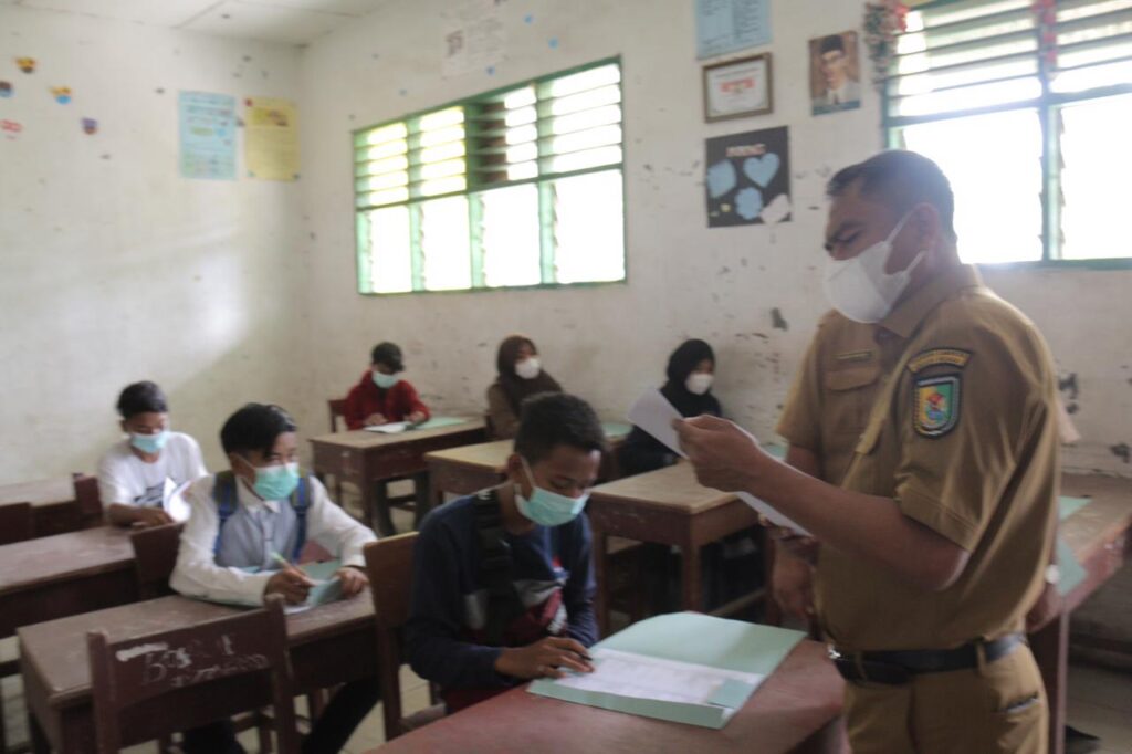 Wabup Sergai Tinjau Pelaksanaan Ujian Daring dan Luring di SMPN 1 Perbaungan