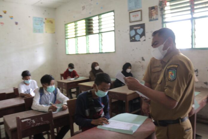 Bupati Serdang Bedagai (Sergai) H Darma Wijaya meninjau pelaksanaan ujian bagi siswa/siswi Sekolah Menengah Pertama (SMP) secara tatap muka (luar jaringan) bertempat di SMPN 1 Sei Rampah, Senin (5/4/2021).