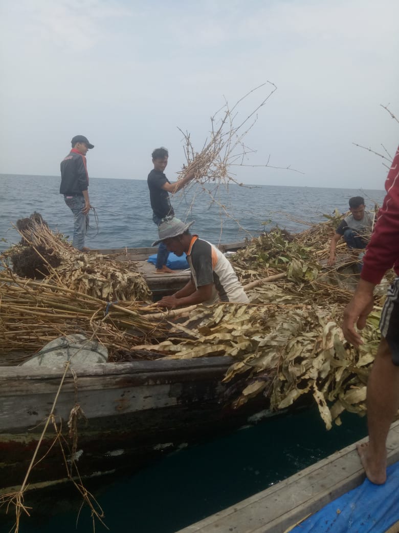 Global Cyber News.Com|Ketua Kelompok Rumpon Nelayan Sabrik bersama dengan para anggota membuat tuasan diperairan laut Desa Rantau Labu , pada Rabu , 7 April 2021 ,di dusun III, Kecamatan Pantai Labu.