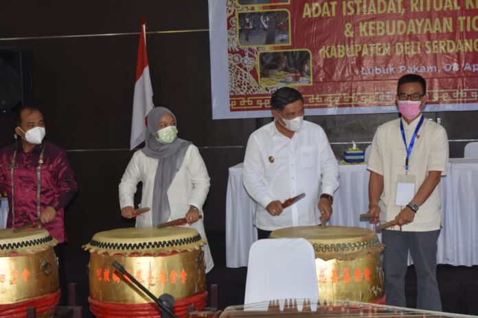 Global Cyber News.Com|Pelaksanakan seminar adat-istiadat, ritual khusus dan kebudayaan tionghoa Kabupaten Deli Serdang Tahun 2021, dibuka Wakil Bupati Deli Serdang HMA Yusuf Siregar, didampingi Kadis Porabudpar H. Khoirum Rijal ST, M.AP, di Gedung P3UD Deli Serdang Kecamatan Tanjung Morawa, Kamis ( 8/4 )
