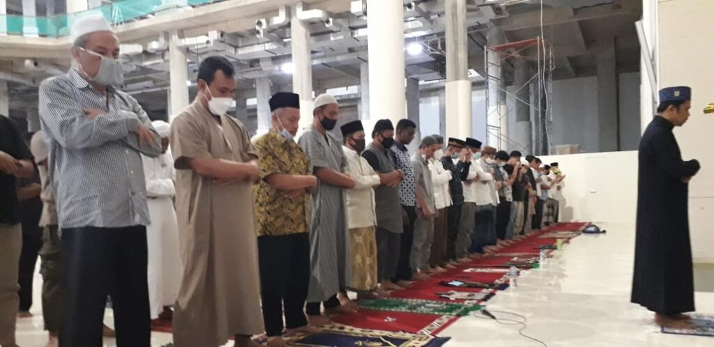 Global Cyber News.Com|Medan – Shalat Tarawih dan Witir malam ke-2 Ramadhan 1442 H di Masjid Agung Jalan Pangeran Diponegoro Medan dilaksanakan dengan uji coba bangunan megah masjid baru kebanggaan masyarakat Sumut itu, Selasa (13/4) malam.