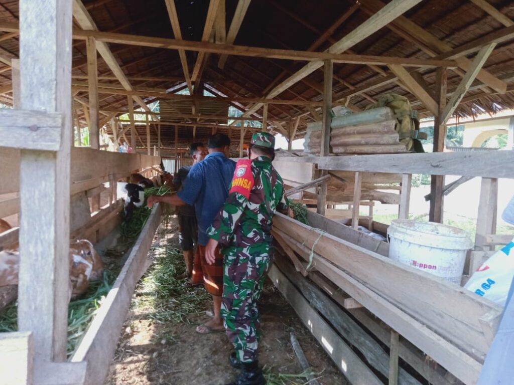 Global Cyber News.Com|Aceh Timur – Babinsa Koramil 18/Bda Sertu Zulkifli Siregar melaksanakan pendampingan kepada Heri Sunarwan pemilik peternakan kambing yang sedang menerapkan program penggemukan, di Desa Panton Rayeuk A, Kecamatan Banda Alam, Kabupaten Aceh Timur, Jum’at (16-04-2021).