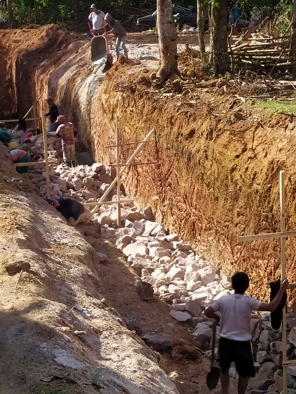 Setelah Aktivis LAP menerjunkan Tim Advokasi guna Melakukan Investigasi Ke Bawah, Tampak Pasangan Batu Di Beberapa Ruas Pekerjaan D.I Waru-Waru Berwarna putih Yang Di Duga Batu Mengandung Kapur,
