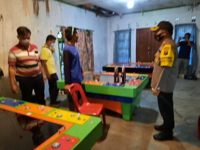 Global Cyber News.Com|Kapolres Sergai AKBP Robin Simatupang bersama Tim Opsnal Sat Reskrim menggerebek lokasi perjudian jenis tembak ikan dari dalam sebuah rumah warga di Dusun XVII Desa Hapoltahan, Kecamatan Seibamban, Senin (26/4/2021).