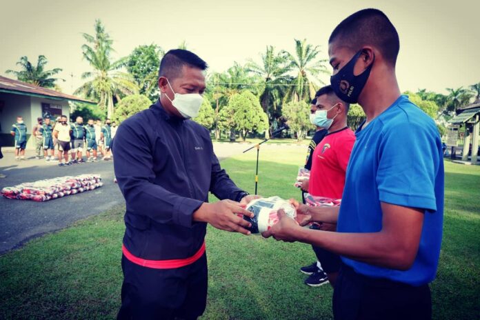 Global Cyber News.Com|Pembagian sepatu olahraga dari Komandan Batalyon kepada Seluruh Prajurit Kilap Sumagan. Bertempat di Lapangan Hitam Yonarmed 2, Deli Serdang. Senin (31/05/2021).