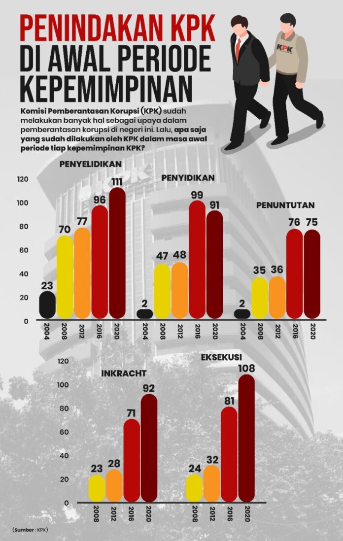 Menariknya, berdasarkan data yang dilansir dari KPK. Capaian kinerja Firli di tahun pertama memimpin komisi anti rasuah lebih baik ketimbang kepemimpinan sebelumnya. Dalam hal penyelidikan tahun 2004 (23) kasus, 2008 (70) kasus, 2012 (96) kasus, 2016 (96) kasus, 2020 (111) kasus. Dan di bidang penyidikan tahun 2004 (2) kasus, 2008 (47) kasus, 2012 (48) kasus, 2016 (99) kasus, dan 2020 (91) kasus.