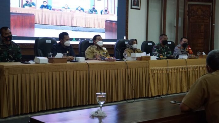 Global Cyber News.Com|BLORA. Guna mengantisipasi agar tidak terjadi lonjakan kasus Covid-19 kembali di wilayah Kabupaten Blora. Bupati H. Arief Rohman, S.IP., M.Si., dengan didampingi Wakil Bupati Tri Yuli Setyowati, ST., MM., pada Senin siang (7/6/2021), menggelar rapat koordinasi lintas sektoral bersama jajaran Forkopimda dan OPD terkait.