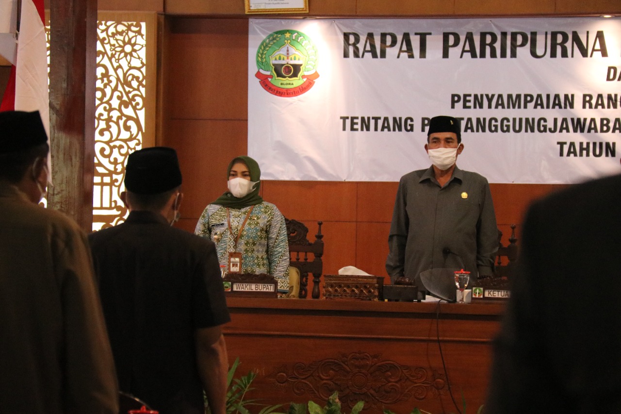 Hadir pada kesempatan tersebut, Pimpinan DPRD, Forkopimda, Sekda Kabupaten Blora, Kepala OPD Pemerintah Kabupaten Blora, dan anggota dewan DPRD Kab. Blora.