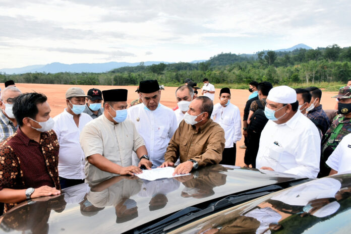 Global Cyber News.Com|-Madina I Gubernur Sumatera Utara (Sumut) Edy Rahmayadi meninjau pengerjaan pembangunan Bandar Udara (Bandara) Bukit Malintang, di hari pertama kunjungan kerja di Kabupaten Mandailing Natal (Madina). Kunjungan ini untuk melihat sejauh mana progres pembangunan Bandara baru tersebut yang telah dikerjakan.