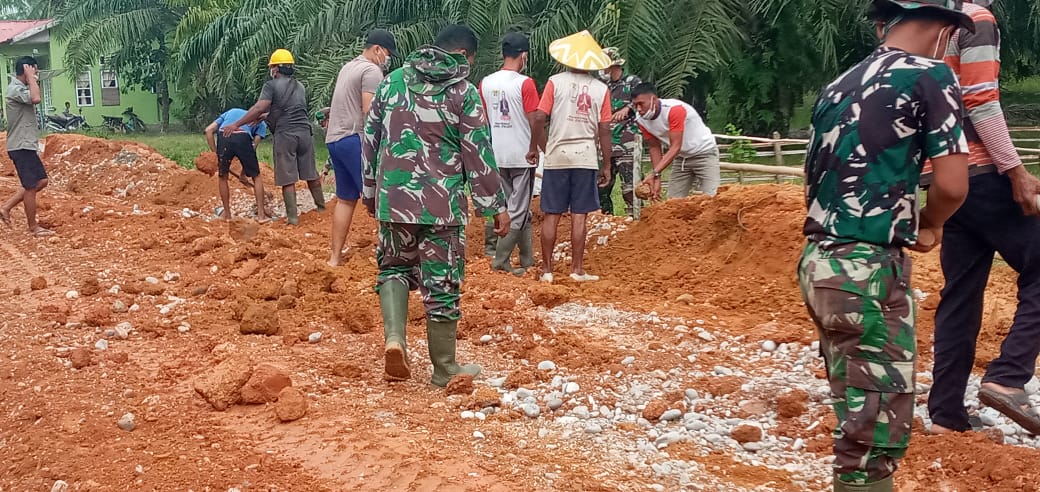 Saat awak Media datang ke Suak Temenggung untuk meliput kegiatan TMMD Kamis kemarin (08/07/2021) tampak terlihat banyak material jalan yang sudah tiba dan langsung dikerjakan oleh anggota Satgas TMMD bersama warga.