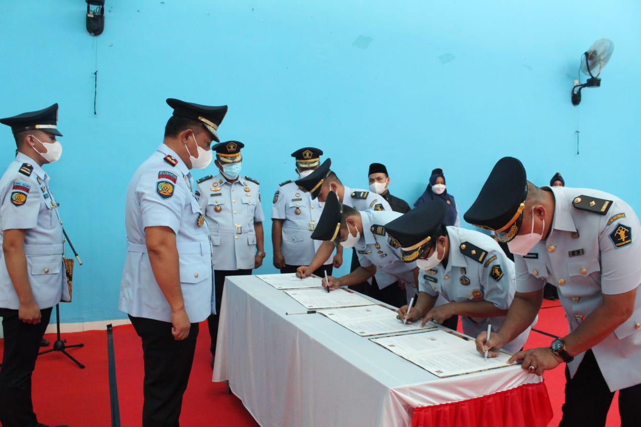 Global Cyber News.Com|SERANG – Empat pejabat administrasi di lingkungan Lembaga Pemasyarakatan Kelas IIA Serang, resmi dilantik. Selasa (24/08/2021)