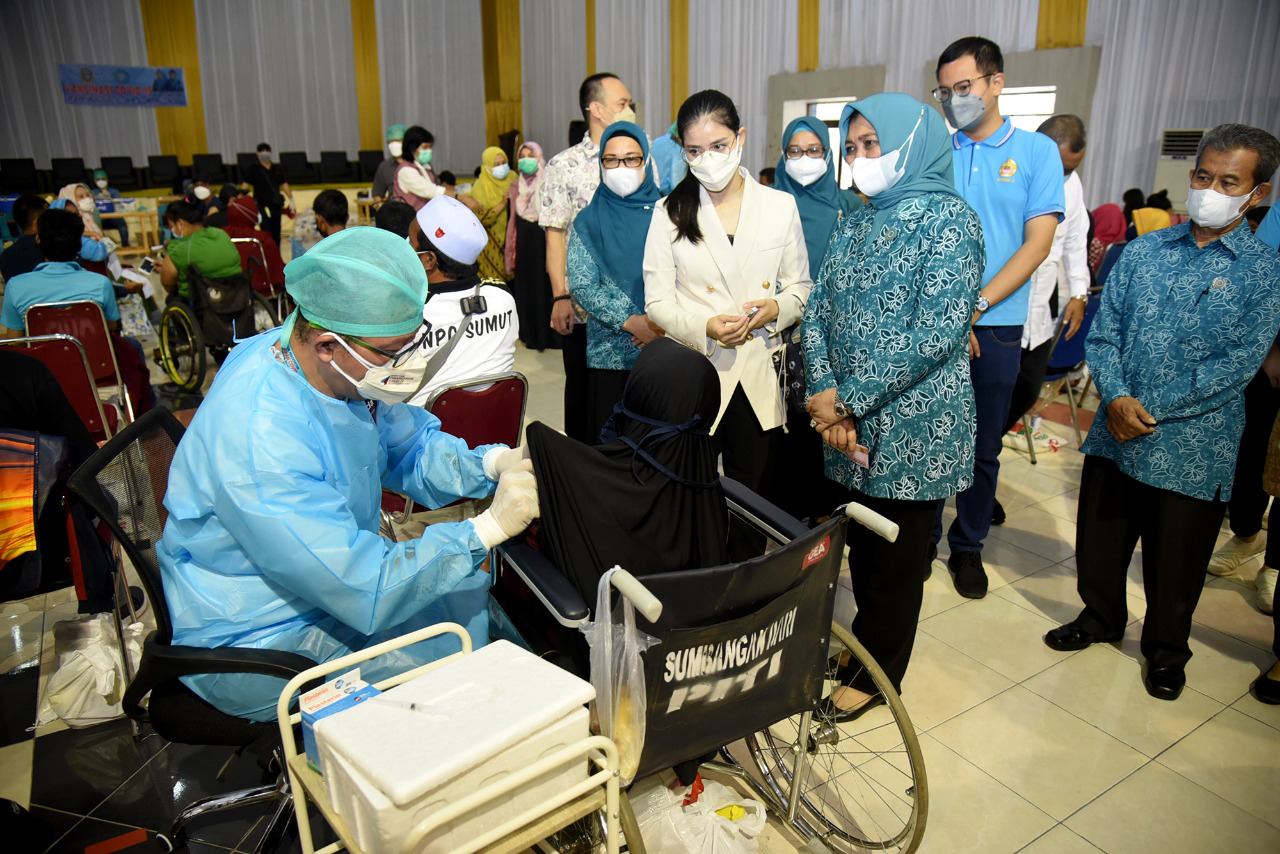 “Vaksinasi ini untuk orang dengan kebutuhan khusus (disabilitas), kita juga vaksinasi keluarganya, sebab kalau tidak begitu kekebalan di keluarganya tidak akan tercapai, ” kata Ketua TP-PKK Sumut Nawal Lubis dalam siaran rilis Diskominfo Sumut.