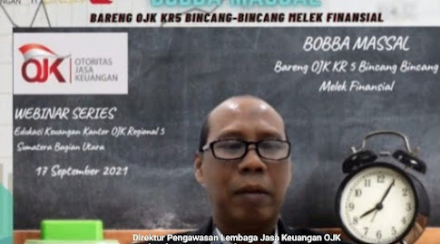 Direktur Pengawasan Lembaga Jasa Keuangan OJK KR5 Sumbagut, Untung Santoso, menyampaikan hal itu saat pembukaan Webinar Edukasi Keuangan secara virtual dalam acara Bareng OJK Bincang Bincang Melek Finansial (Bobba Masal) pada Jum’at (17/9/2021).