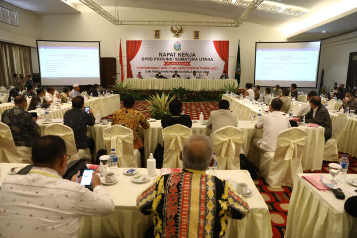 Hal ini disampaikan Wagub Musa Rajekshah saat memberikan kata sambutan pada Rapat Kerja (Raker) DPRD Sumut dalam rangka Penyampaian Hasil Evaluasi Kinerja tahun 2021 dan Penetapan Program Kerja tahun 2022, di The Hill Sibolangit, Jumat (24/9). Hadir di antaranya Ketua DPRD Sumut Baskami Ginting, Wakil Ketua DPRD Sumut Harun Mustofa Nasution, dan para anggota DPRD Sumut.