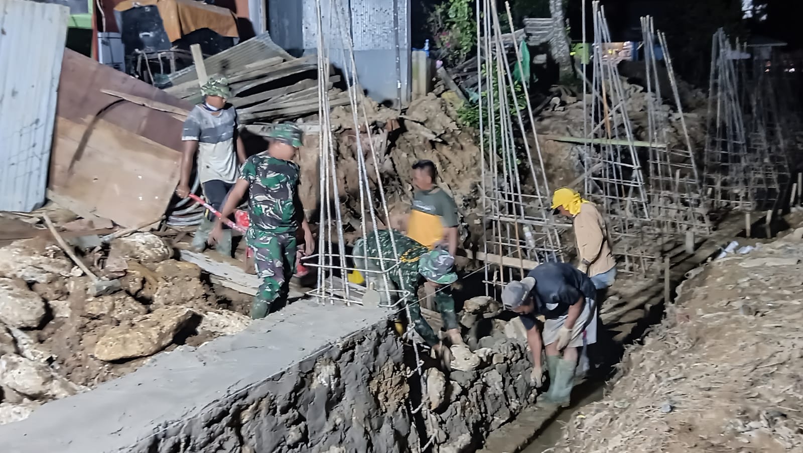 Gelapnya malam tak menyurutkan semangat anggota Satgas dalam melaksanakan pembuatan turap sungai untuk memberikan hasil yang maksimal dan selesai pada waktu yang telah ditentukan.