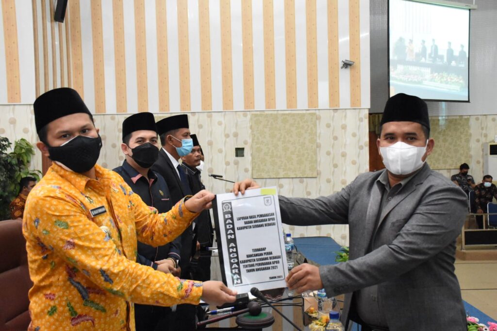 ” Alhamdulillah proses untuk merumuskan dan menyempurnakan Ranperda Kabupaten Sergai tentang P.APBD TA 2021 telah kita lalui dan kita selesaikan dengan baik. Dengan ditetapkanya Perda P.APBD TA 2021 ini, kita telah memiliki pedoman dan acuan dalam merealisasikan berbagai program kegiatan yang sudah sangat mendesak dilaksanakan pada tahun ini, untuk melanjutkan pembangunan dalam upaya peningkatan kesejahteraan masyarakat Tanah Bertuah Negeri Beradat di tengah pemulihan perekonomian masyarakat di masa pandemi Covid-19,” kata Wabup.