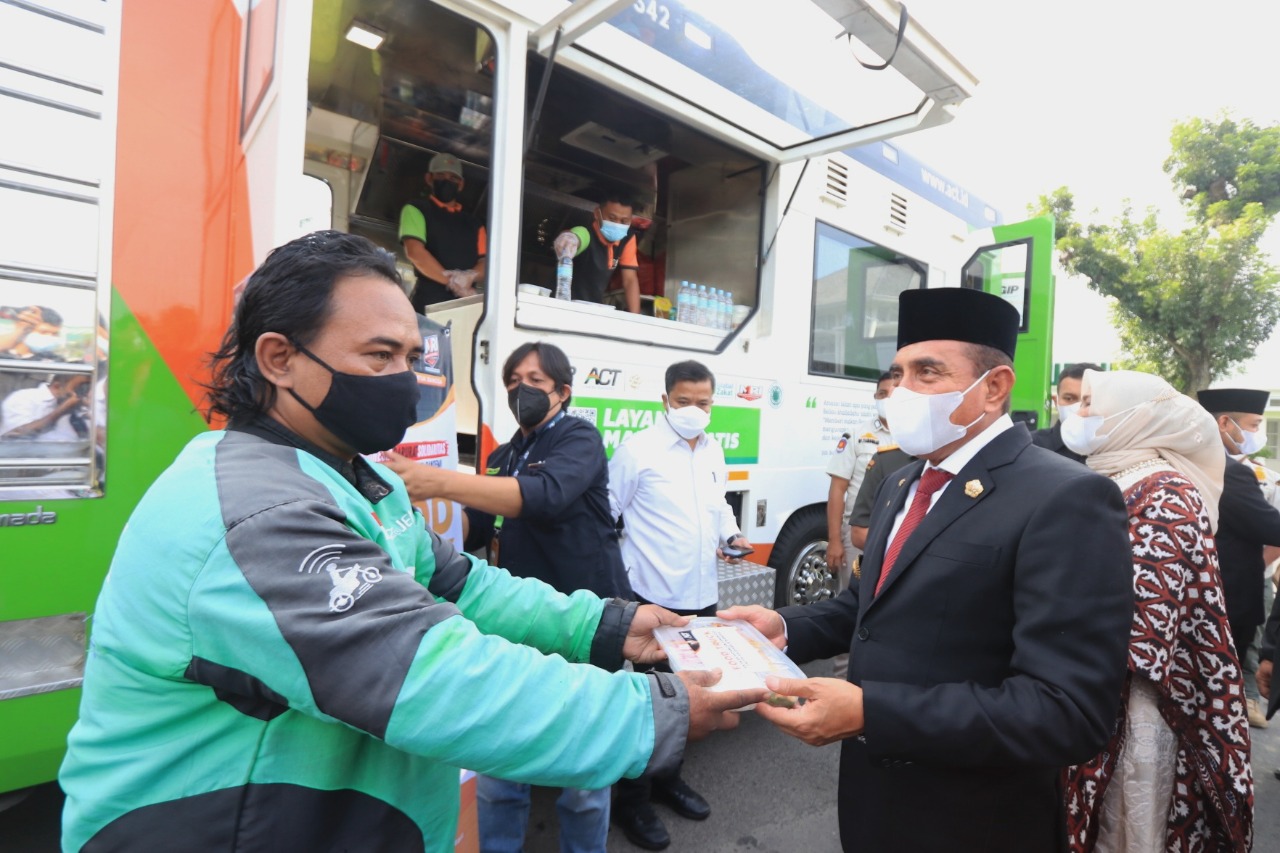 Global Cyber News.Com|-Medan I Gubernur Sumut, Edy Rahmayadi membuka aksi perdana Food Truck (truk makanan) dari Aksi Cepat Tanggap (ACT) di Halaman Rumah Dinas Gubernur, Jalan Jenderal Sudirman Nomor 41, Medan, Rabu (6/10). Food truck tersebut nantinya akan berkeliling membagikan makanan kepada masyarakat yang membutuhkan.