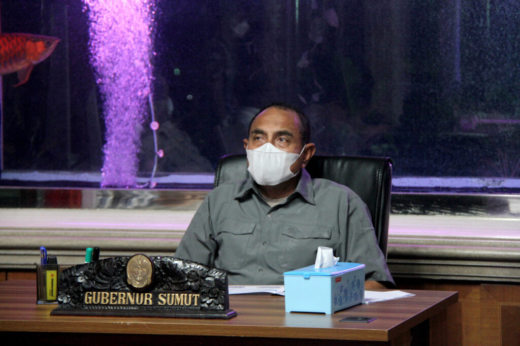 Hal ini disampaikannya usai mengikuti rapat secara virtual dengan Menteri Koordinator Bidang Kemaritiman dan Investasi (Menko Marves) RI Luhut Binsar Pandjaitan terkait pembukaan Kedatangan Internasional di Bandara Kualanamu dan Ngurah Rai Bali, di kediaman Gubernur Sumut Jalan Karya Bakti Medan Johor, Sabtu (2/10) sore. Hadir di antaranya Sekretaris Satgas Covid-19 Sumut Arsyad Lubis, Liaison Officer (LO) BNPB Pusat untuk Sumut Mayjen TNI (Purn) Darlan Harahap dan lainnya.