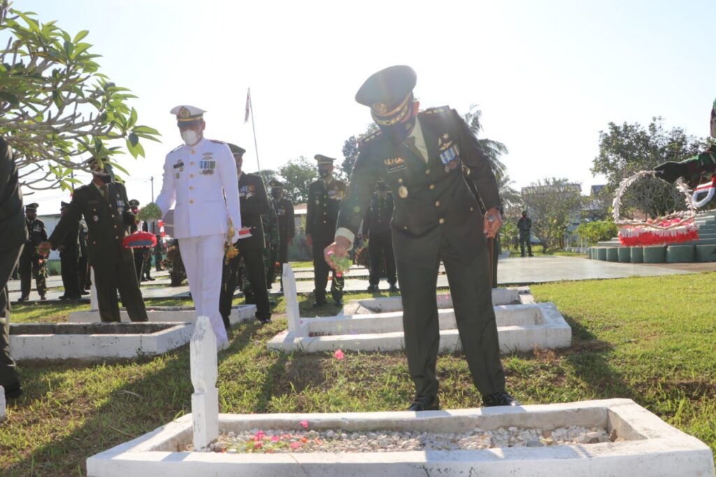 Global Cyber News.Com| Langsa – Kodim 0104/Aceh Timur menggelar Ziarah Nasional di Taman Makam Pahlawan (TMP), Jalan PTPN-I Kebun Baru, Desa Paya Bujok Seulemak, Kecamatan Langsa Baro, Kota Langsa, Senin (04-10-2021).