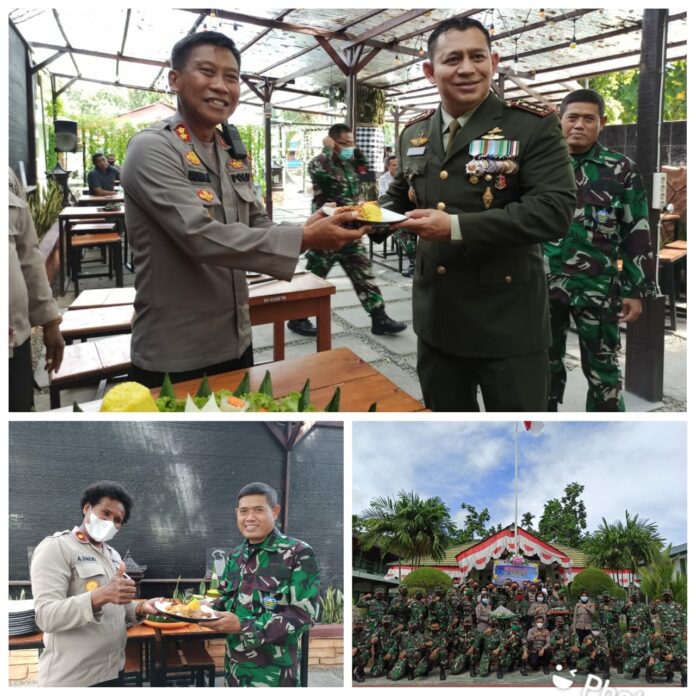 Global Cyber News.Com| Dalam rangka memperingati HUT TNI ke – 76, Polres Manokwari gruduk jajaran Kodim 1801/Manokwari dengan membawa Nasi Tumpeng dan Krans Bunga di jalan Brawijaya Lapangan Apel Makodim 1801/Manokwari Kabupaten Manokwari, Provinsi Papua Barat, Selasa (05/10/2021)