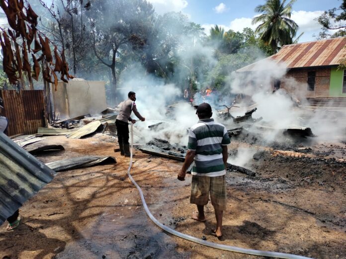 “Karena didalam rumah terdapat tabung gas elpiji 25 kg dan 1 unit sepeda motor sehingga mempercepat api menjalar ke seluruh bagunan sehingga api sulit dipadamkan dan sekitar jam 12:15 rumah tersebut terbakar habis tanpa ada barang yang dapat diselamatkan, dan sekitar jam 13.30 Wit api dapat dipadamkan dengan bantuan mobil tengki air sebanyak 3 unit.