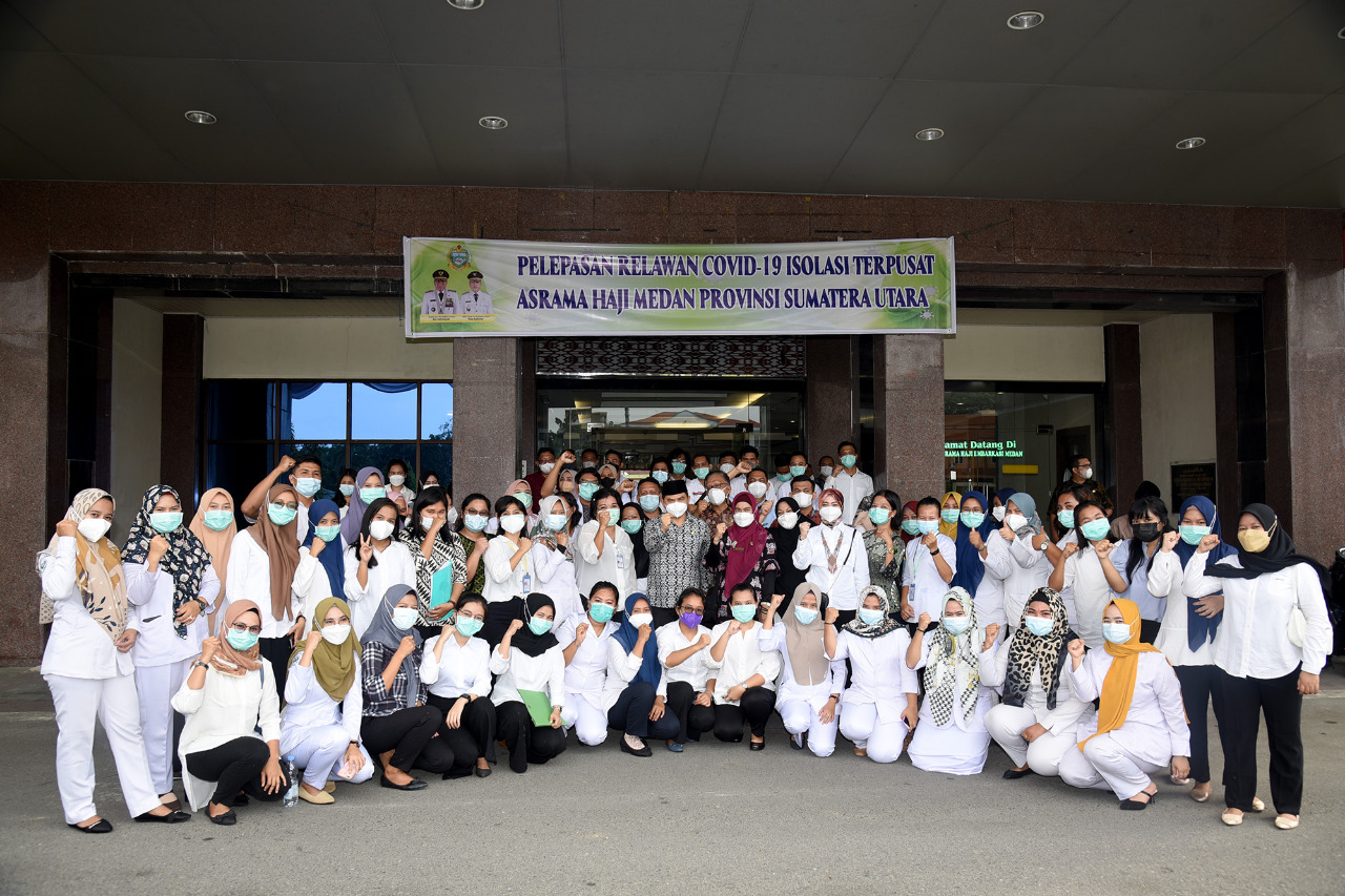 Sebelumnya, Kepala Dinkes Sumut Ismail Lubis melepas para relawan Covid-19 baik Nakes, tenaga jaga maupun petugas kebersihan yang selama ini bekerja di lokasi Isoter, Asrama Haji Medan.