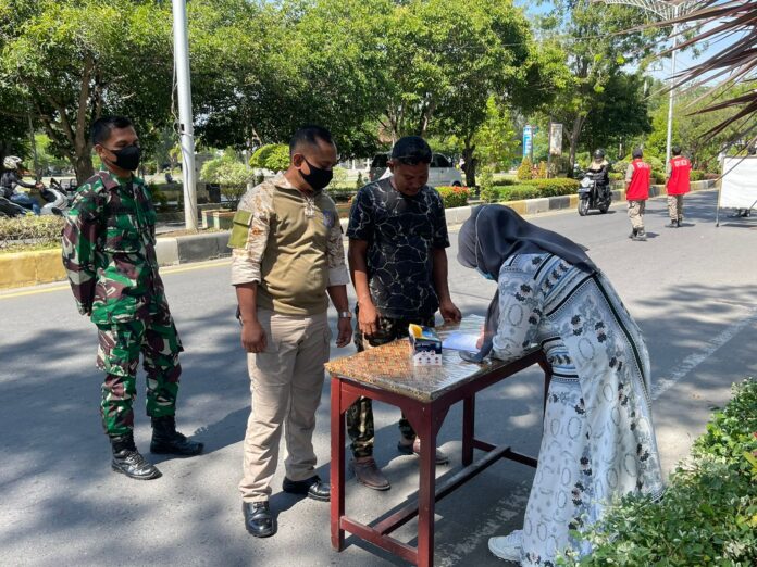 Global Cyber News.Com| Langsa – Menyikapi penyebaran Covid-19 di wilayah Kota Langsa yang saat ini masih berada pada Zona Kuning, personel gabungan TNI/Polri bersama instansi terkait yang tergabung dalam Tim Peucrok gencar menggelar Operasi Yustisi pencegahan Covid-19 bagi para pengendara sepeda motor dan kendaraan roda empat yang melanggar protokol kesehatan, yang dipusatkan di Taman Kota Bambu Runcing Kota Langsa, Jum’at (15-10-2021).