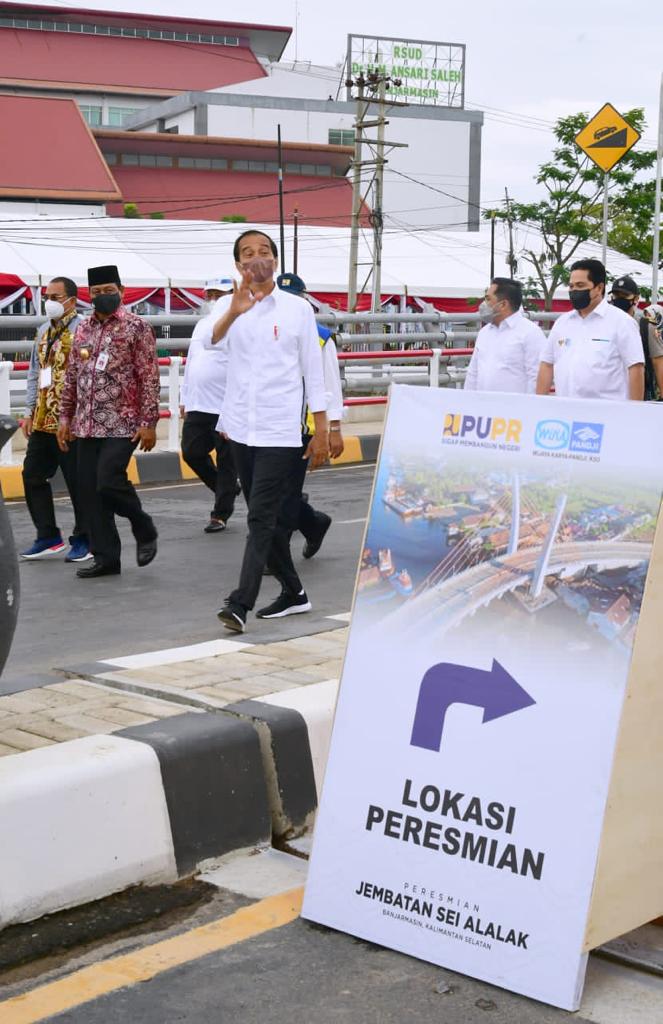 Global Cyber News.Com| Presiden Joko Widodo meresmikan Jembatan Sei Alalak dalam kunjungan kerjanya di Kota Banjarmasin, Provinsi Kalimantan Selatan, pada Kamis, 21 Oktober 2021. Jembatan tersebut telah dinanti oleh masyarakat Kalimantan Selatan karena fungsinya yang sangat strategis.