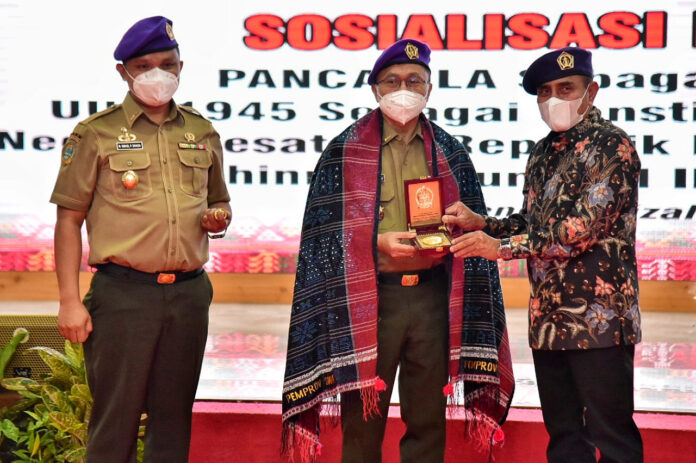 Global Cyber News.Com|-Medan I Ketua Umum Dewan Pimpinan Nasional (DPN) Ikatan Alumni Resimen Mahasiswa Indonesia (IARMI) Zulkifli Hasan menyematkan Baret IARMI kepada Gubernur Sumut, Edy Rahmayadi, serta mengangkat Edy Rahmayadi sebagai Dewan Kehormatan IARMI Sumut.